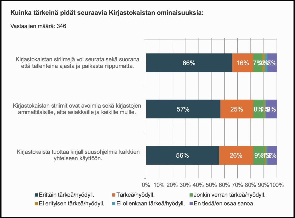 Tulokset antavat vahvan tuen Kirjastokaistan mallille tuottaa avoimesti sisältöjä sekä kirjastoammattilaisille että laajalle yleisölle.